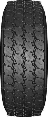 Беговую часть протектора отличает открытый дизайн с четырьмя рядами наклоненных блоков. Элементы имеют сложную форму, которая увеличивает, как количество формируемых ими кромок, так и их протяженность. Это улучшает сцепление и его стабильность. Многошаговое расположение блоков увеличивает размеры пятно контакта, обеспечивая равномерность распределения по нему веса прицепа и перевозимого им груза. Каркас и брекер целиком изготовлены из стального корда. Это повышает несущую способность шины и ее устойчивость к ударному воздействию.